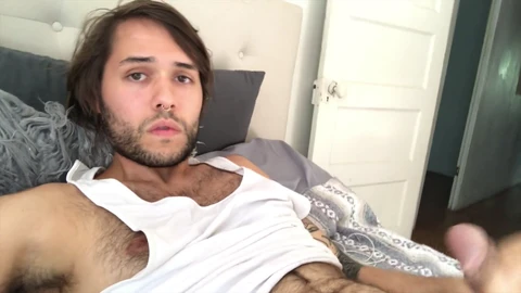 Intensives Stöhnen und heißes Schmutzgespräch, während ein tätowierter Schwanz gestreichelt wird, bis eine riesige Ladung Samen kommt.